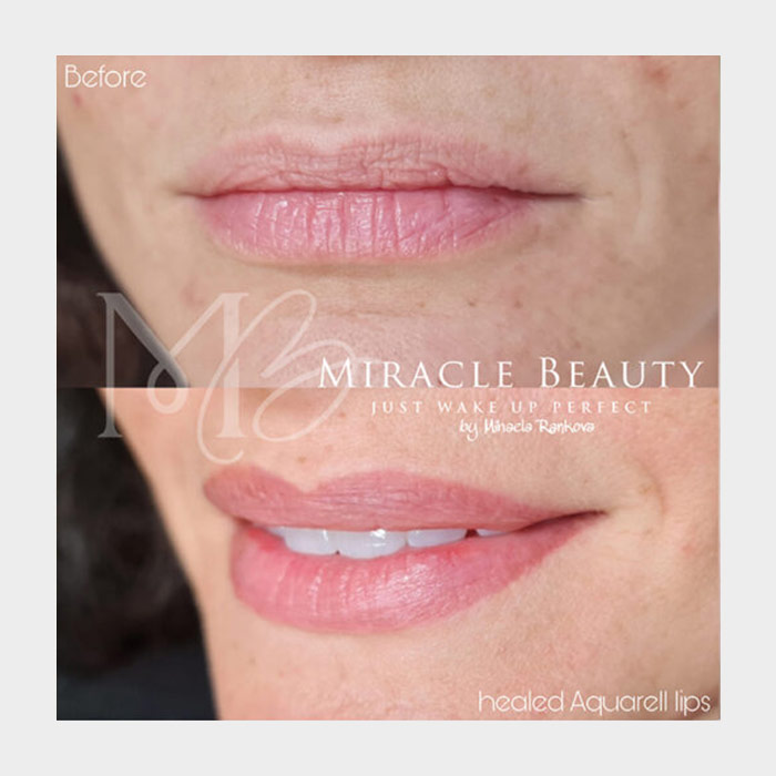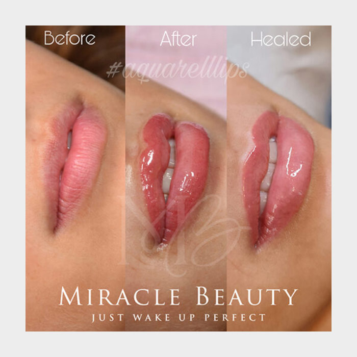 The lib blushing and coloring treatment takes between 2-3 hours in the first session. After an indept consultation, we mix the perfect indivuidual colour and draw the most sutiable and flattering lipshape for you. Before the treatment starts, if wanted, effective anesthetic creams are applied. Thanks to these creams, the pain felt is minimized. But 80% of our clients dont need any numbing. Then the sequence comes to the application itself. As with all permanent make-up applications, special sterile permanent make-up needles are used for lip coloring. These needles, depending on your lip structure and shape, are injected with 0.3-0.5 millimeters of the skin, placing the selected color pigments. Permanent lip coloring is in fact similar to traditional tattoo techniques; however, the biggest difference between them is that the needle does not go as deeply as in the tattooing process. Also the shading technique is unique for lips and important to acheve the light and natural result as wanted.